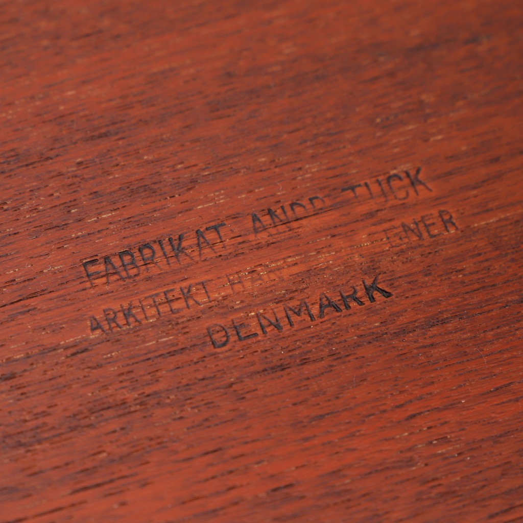 AT308を製造したアンドレアス・タック社は、テーブルやデスクの製作を得意とした工房でした。当時のデンマーク家具産業では、デザイナーの設計を複数の工房が分業で支える体制が取られており、アンドレアス・タック社はその中でもテーブル製作を担っていました。脚部構造や天板加工といった難しい工程を高い精度で仕上げる技術があったからこそ、ウェグナーの設計は無理なく製品として成立しています。