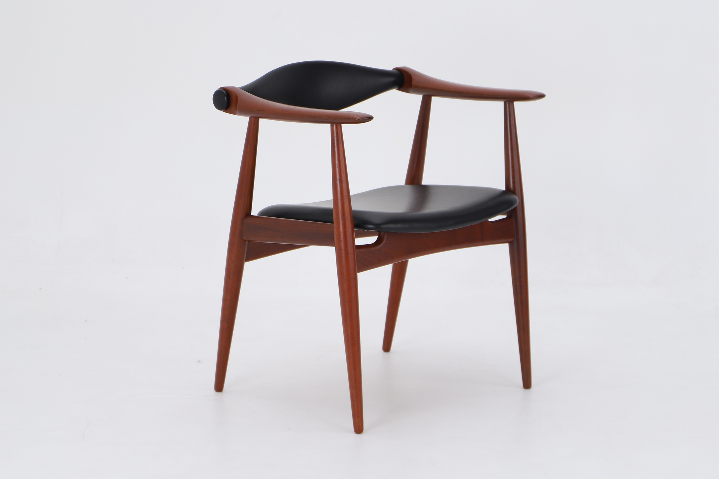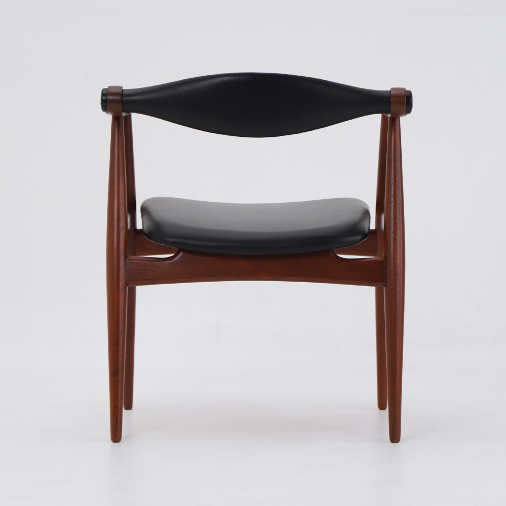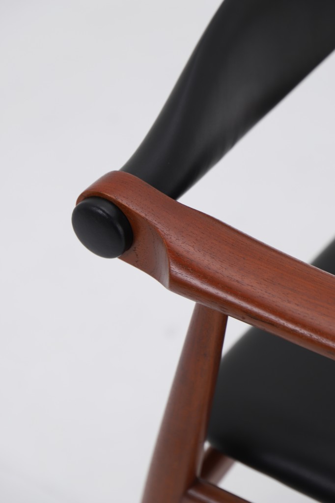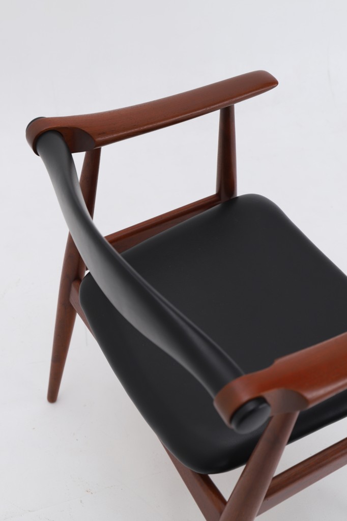 CH34の大きな特徴は、背もたれがわずかに動く構造を持っている点です。座る姿勢が変わると、それに合わせて背が自然に追従し、身体への負担を和らげます。背もたれからアームにかけて続くヨーク状の形は、しっかりとした支えを持ちながら、腕を置いたときの感触にも配慮されています。使う人の動きを受け止めるための、静かな工夫が詰まっています。